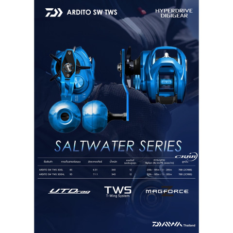 รอก DAIWA ARDITO SW TWS รอกเบทสำหรับงานทะเล/งานหนัก ที่รวมเทคโนโลยีระดับท็อปของ DAIWA ไว้ครบ ทั้งความลื่น ความอึด และพลังเบรก ตอบโจทย์สายตีเหยื่อปลอม จิ๊กกิ้งเบา ไปจนถึงงานลากปลากะพง/อินทรี/ปลาเกมไซซ์มันส์ ๆ ใช้งานมั่นใจพร้อมการรับประกันจาก DAIWA