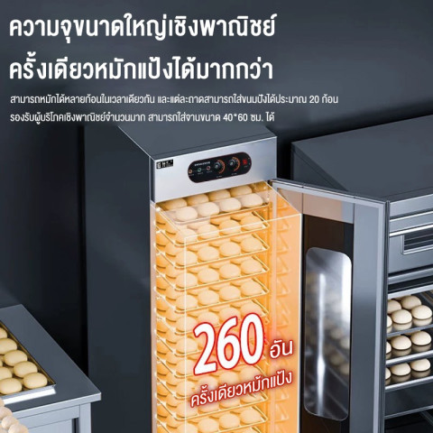 ตู้อบหมักแป้ง/ตู้หมักแป้งซาลาเปาหมั่นโถว ระบบลมร้อนแบบหมุนเวียน ช่วยให้การหมักขึ้นฟูสม่ำเสมอ เหมาะทั้งใช้งานที่บ้าน ร้านอาหาร คาเฟ่ เบเกอรี่ และโรงแรม ครบจบในเครื่องเดียวทั้งควบคุมอุณหภูมิและความชื้น พร้อมระบบเติมน้ำอัตโนมัติ ลดปัญหาหน้าแป้งแห้ง ทำงานเสถียรด้วยไฟบ้าน 220V