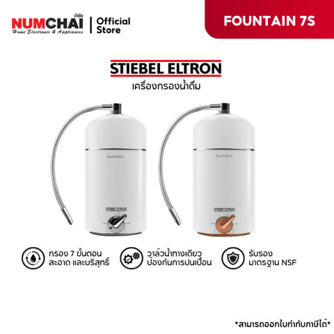 เครื่องกรองน้ำดื่ม STIEBEL FOUNTAIN 7S สีเงินสีทอง เครื่องกรองน้ำระดับพรีเมียมที่สะท้อน “หัวใจของความสะอาด” เพื่อการดื่มและการใช้งานในครัวอย่างมั่นใจ ไม่ว่าจะดื่มน้ำ ล้างผัก หรือประกอบอาหาร ก็ได้น้ำที่ใสสะอาดด้วยประสิทธิภาพการกรอง 7 ขั้นตอนใน 1 ไส้กรอง ผ่านมาตรฐาน NSF และโดดเด่นด้วยชั้นหิน SILVERLITE ช่วยยับยั้งการเจริญเติบโตของแบคทีเรีย เพิ่มความสดชื่นและปลอดภัยในทุกแก้ว โดย ไม่ต้องใช้ไฟฟ้า