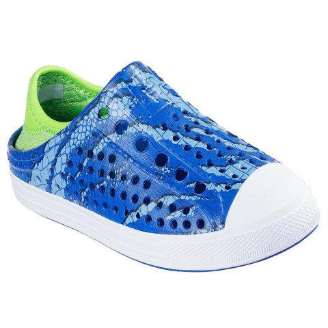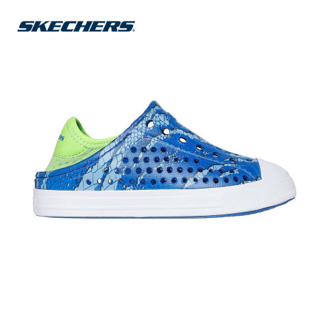 Skechers รองเท้าเด็กผู้ชาย Boy Guzman Steps Foamies Shoes - 406608L-BLLM รองเท้าสลิปออนคู่โปรดสำหรับอากาศร้อน ใส่ง่าย เบาสบาย และกระชับเท้าด้วยระบบปิดแบบปรับได้ มาพร้อมลายพิมพ์สไตล์เรปไทล์สุดเท่ โทนสี Blue/Lime เหมาะทั้งใส่เที่ยว เล่น หรือทำกิจกรรมประจำวันของเด็กๆ