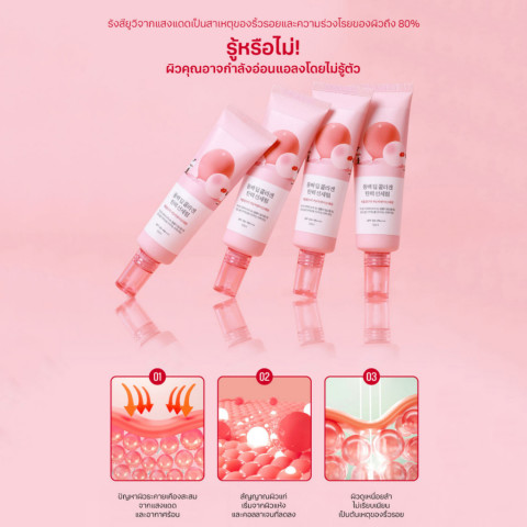 ประเภทเนื้อสัมผัส: เซรั่มกันแดดสีชมพู บางเบา ไม่เหนียวเหนอะ