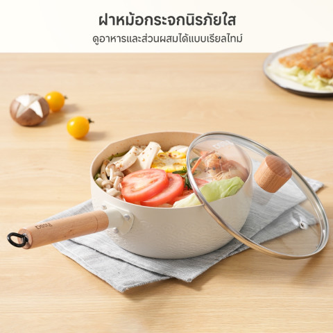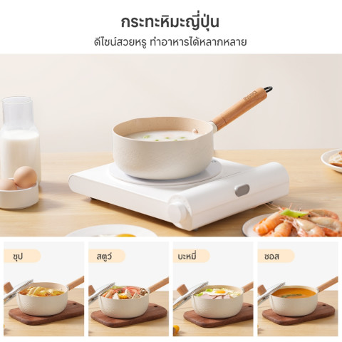 หม้อขนาดกะทัดรัดสไตล์ญี่ปุ่นคลาสสิก เรียบสวยทันสมัย เหมาะทั้งทำอาหารเช้า อุ่นนม ต้มบะหมี่ ทำซุป หรือทำอาหารเสริมสำหรับเด็กในหม้อเดียว เคลือบกันติดเกรดอาหาร ปลอดสารอันตราย ใช้งานง่าย ทำความสะอาดไว ตอบโจทย์ครัวทุกบ้าน