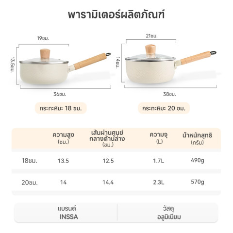 [รับประกัน 1 ปี] INSSA หม้อนม/หม้ออเนกประสงค์ 18 ซม. รุ่น GUOJ020 ราคา 551.08 บาท