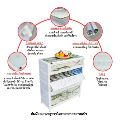 ตู้รองเท้าอลูมิเนียม ใหญ่หนา แกนเงิน ลายหินอ่อน รุ่น Premium (UBOX) ดีไซน์เรียบหรูสไตล์หินอ่อน พร้อมโครงอลูมิเนียมแท้แกนใหญ่หนาพิเศษ แข็งแรงทนทาน กันน้ำ ไม่เป็นสนิม จัดเก็บรองเท้าได้เป็นระเบียบ เหมาะทั้งวางในบ้านหรือหน้าบ้าน ช่วยลดความอับชื้นและดูแลรองเท้าให้พร้อมใช้งานเสมอ
