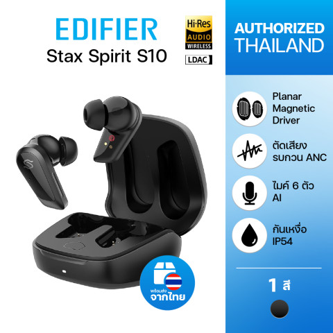 Edifier Stax Spirit S10 หูฟัง True Wireless ระดับพรีเมียมที่ยกระดับประสบการณ์ฟังเพลงด้วยไดร์เวอร์ Planar Magnetic 12 มม. ให้เสียงใส รายละเอียดครบ เวทีเสียงโปร่งเป็นธรรมชาติ พร้อมโค้ดเสียง Hi-Res อย่าง LDAC, LHDC 5.0 และ aptX™ Adaptive สำหรับคนที่ต้องการคุณภาพเสียงแบบจริงจังทั้งฟังเพลงและดูคอนเทนต์ในชีวิตประจำวัน มาในโทนสี Black เรียบเท่ ใช้ได้ทุกสไตล์ ในราคา 9,900.00 บาท