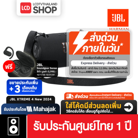 (แถมฟรี JBL Soundgear Sense) JBL XTREME 4 New 2024 ลำโพงพกพาสายลุย สี Blue ออกแบบมาเพื่อให้คุณพกเสียงเบสทรงพลังไปได้ทุกที่ ไม่ว่าจะปาร์ตี้ริมสระ ทริปแคมป์ปิ้ง หรือใช้งานกลางแจ้งแบบไม่ต้องกังวล เพราะรองรับการกันน้ำและกันฝุ่นระดับ IP67 พร้อมความมั่นใจด้วย รับประกันศูนย์ไทย
