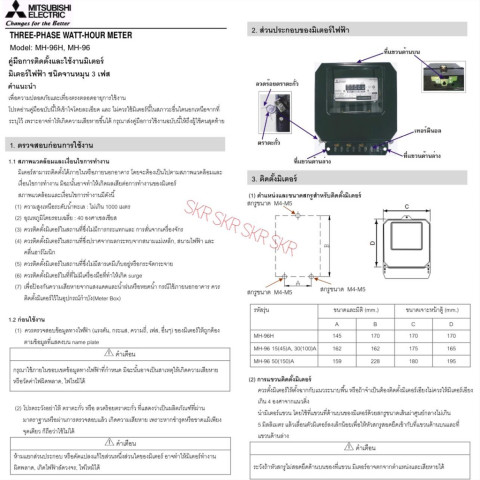 Mitsubishi มิเตอร์ไฟฟ้า 3 เฟส 4 สาย 380V (MH-96 Series) มิเตอร์วัดหน่วยไฟฟ้าแบบกิโลวัตต์-ชั่วโมง (kWh) สำหรับระบบไฟฟ้า 3 เฟส 4 สาย เหมาะสำหรับบ้านพักอาศัย อาคารพาณิชย์ โรงงานขนาดเล็ก ไปจนถึงงานติดตั้งที่ต้องการอุปกรณ์มาตรฐาน ใช้งานได้มั่นใจด้วยมาตรฐาน มอก. 2336-2552 และมาตรฐานสากล รองรับการอ่านค่าการใช้ไฟอย่างชัดเจนด้วยหน้าปัดแบบลูกล้อตัวเลข