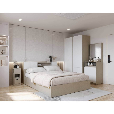 Koncept Furniture ชุดห้องนอน ขนาด 5 ฟุต รุ่น Hollyn จากแบรนด์ KONCEPT FURNITURE ดีไซน์โมเดิร์นเรียบหรูในโทน สีผ้าครีม/ไอโวรี่ลินิน ตัดขาว ช่วยให้ห้องดูสว่าง โปร่ง และเข้ากับการแต่งห้องได้หลากหลาย เหมาะสำหรับคนที่อยากได้ชุดห้องนอนครบเซ็ต ทั้งสวยและใช้งานได้จริงในพื้นที่กำลังพอดี