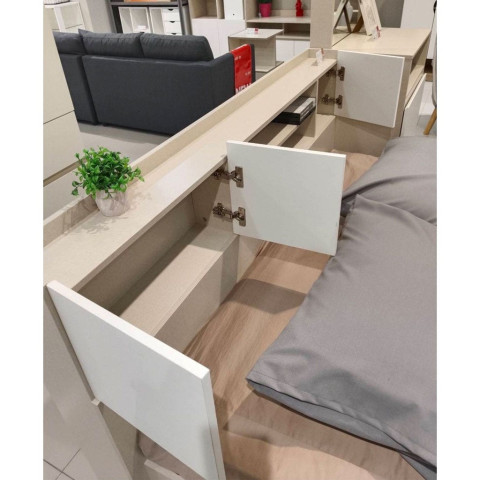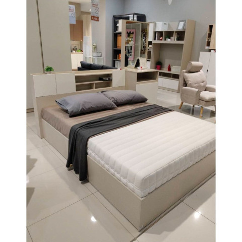 เตียง 5 ฟุต ขนาด 164 x 200 x 90 ซม. หัวเตียงออกแบบให้ใช้งานได้จริง มี หน้าบานเปิดเก็บของ 3 หน้าบาน พร้อม ชั้นวางของ ช่วยเพิ่มพื้นที่จัดเก็บให้เป็นระเบียบ
