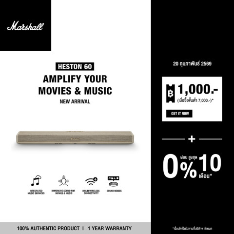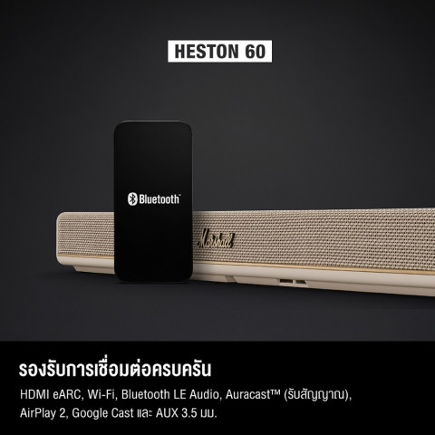 [NEW ARRIVAL] MARSHALL Heston 60 Cream ซาวน์บาร์ดีไซน์ระดับตำนานที่รวมความคลาสสิกแบบ Marshall เข้ากับพลังเสียงสมจริงรอบทิศทาง เหมาะอย่างยิ่งสำหรับห้องนอน คอนโด หรือพื้นที่จำกัดที่ต้องการอัปเกรดประสบการณ์ดูหนัง ฟังเพลง และเล่นเกมให้ “เต็มอารมณ์” ด้วยเสียงที่แยกชิ้นดนตรีและเสียงร้องได้ชัดเจน