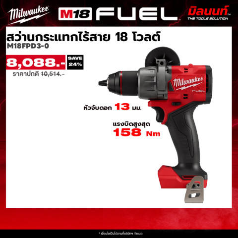 Milwaukee M18 FPD3-0 สว่านกระแทกไร้สาย 18V (เครื่องเปล่า) เครื่องมือสายช่างที่ให้ทั้งพลัง แรงบิดสูง และความคล่องตัวในตัวเดียว เหมาะสำหรับงานเจาะไม้ เหล็ก และงานเจาะกระแทกปูนที่ต้องการประสิทธิภาพจริงจัง ด้วยมอเตอร์ไร้แปรงถ่าน POWERSTATE™ ทำงานแรง ทน และไม่ต้องคอยเปลี่ยนแปรงถ่าน พร้อมระบบอัจฉริยะ REDLINK PLUS™ ช่วยปกป้องเครื่องมือและแบตเตอรี่ให้ใช้งานได้มั่นใจยิ่งขึ้น
