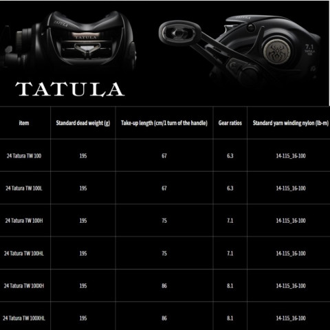 รุ่นใหม่นี้เปิดตัวพร้อมคุณสมบัติเด่น “HYPERDRIVE DESIGN” เป็นครั้งแรกในซีรีส์ TATULA TW 100 ผสานเทคโนโลยีและการออกแบบที่พิถีพิถัน เพื่อให้คุณ “คุมเกม” ได้มั่นใจยิ่งขึ้น ตั้งแต่จังหวะปล่อยเหยื่อไปจนถึงการเก็บสายอย่างต่อเนื่อง ช่วยลดความกังวลเรื่องปัญหาหน้างาน และยกระดับประสบการณ์ตกปลาของคุณให้เหนือขึ้นไปอีกขั้น