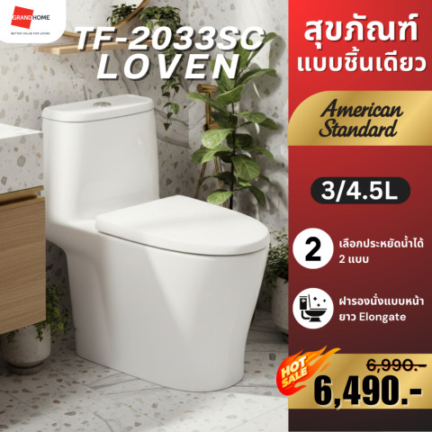 💥พร้อมส่ง💥 AMERICAN STANDARD สุขภัณฑ์ 1 ชิ้น รุ่น LOVEN TF-2033SC-WT-0 สีขาว ดีไซน์สวยเรียบไร้รอยต่อ รวมถังพักน้ำและโถสุขภัณฑ์เป็นชิ้นเดียว ให้ลุคทันสมัย ทำความสะอาดง่าย เหมาะกับห้องน้ำได้หลากหลายสไตล์ พร้อมระบบชำระล้าง Dual Flush 3/4.5 ลิตร ช่วยประหยัดน้ำแต่ยังคงพลังชำระล้างที่สะอาดหมดจด และเคลือบสารลดการสะสมของแบคทีเรียเพื่อสุขอนามัยที่ดีในการใช้งานทุกวัน