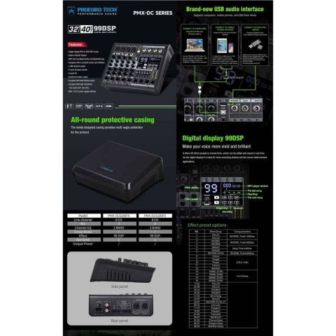 โดดเด่นด้วยระบบเล่นเพลง MP3 พร้อมหน้าจอดิจิทัล รองรับ U-DISK และ Bluetooth แถมมีฟังก์ชัน บันทึกเสียง (Recording) ช่วยให้จัดรายการ/บันทึกงานได้สะดวกขึ้น เสริมความครบเครื่องด้วย เอฟเฟกต์ DSP 99 แบบ สำหรับปรับโทนเสียงร้องและดนตรีให้มีมิติ พร้อมช่องต่อ Computer Sound Card Interface สำหรับเชื่อมต่อคอมพิวเตอร์ได้ง่าย