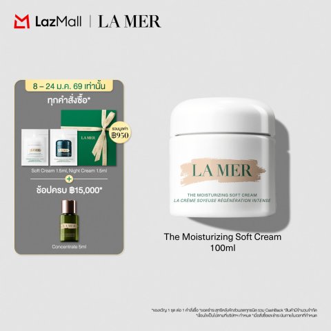 La Mer – The Moisturizing Soft Cream 100ml คือมอยส์เจอไรเซอร์ระดับตำนานที่หลายคนยกให้เป็นจุดเริ่มต้นของผิวสวยในแบบฉบับ La Mer ด้วยเนื้อครีมเข้มข้นแต่สัมผัสนุ่มละมุน ช่วยเติมความชุ่มชื้นอย่างล้ำลึก ฟื้นบำรุงผิวแห้งกร้าน และเสริมปราการปกป้องผิวตามธรรมชาติ ให้ผิวดูนุ่ม ชุ่มชื้น เรียบเนียนและกระชับ พร้อมเผยผิวที่ดูเปล่งประกาย กระจ่างใสทั้งกลางวันและกลางคืน