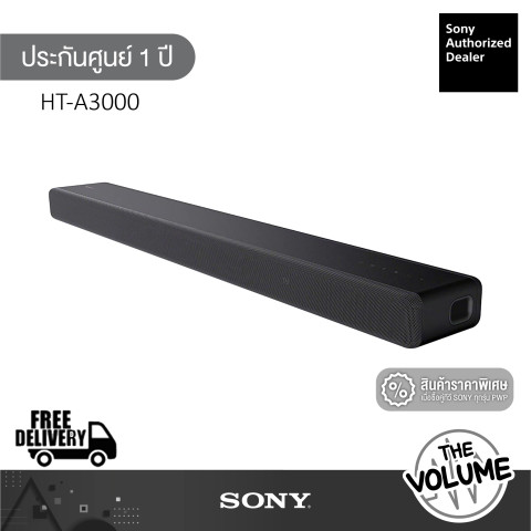 Sony HT-A3000 ลำโพงซาวด์บาร์ Dolby Atmos DTS:X Soundbar 3.1 Ch (ราคาแลกซื้อกับทีวี) ยกระดับความบันเทิงในบ้านให้ “เหมือนอยู่ในฉาก” ด้วยพลังเสียงรอบทิศทางแบบหลายมิติ ไม่ว่าจะเป็นหนัง ซีรีส์ กีฬา หรือเพลงโปรด ตัวซาวด์บาร์เพียงตัวเดียวก็ให้ประสบการณ์เสียงเซอร์ราวด์ 3.1 แชนเนลที่สมจริง พร้อมซับวูฟเฟอร์คู่ในตัว เบสแน่น กระหึ่ม และมีลำโพงเซ็นเตอร์เฉพาะเพื่อเสียงบทสนทนาชัดเจน