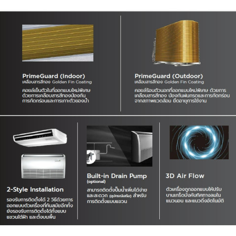 แผงคอยล์เย็นและคอยล์ร้อน เคลือบสารสีทอง ลดการเกาะตัวของน้ำ ช่วยลดการกัดกร่อน ยืดอายุการใช้งาน