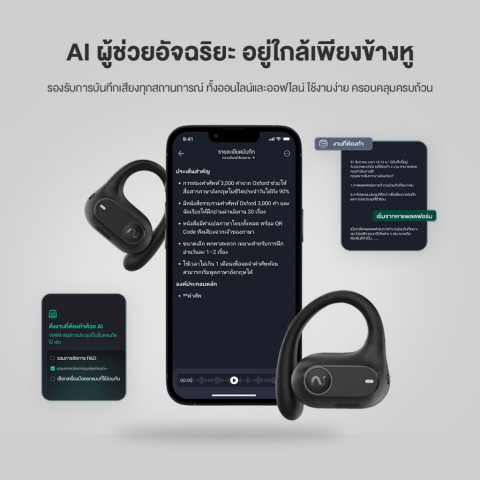 เทคโนโลยี Directional Sound ส่งเสียงตรงเข้าหู ช่วยให้ฟังชัดทั้งคุยโทร ประชุม และฟังเพลง พร้อมลดการรบกวนคนรอบข้างAI ผู้ช่วยบันทึกประชุม