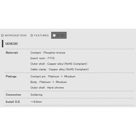 OYAIDE GENESIS Platinum+Rhodium RCA Connectors (Made in Japan) จากร้าน All Cable หัว RCA ระดับออดิโอไฟล์สำหรับงานประกอบสายสัญญาณคุณภาพสูง โดดเด่นด้วยการชุบ Platinum+Rhodium ทั้งเข็มสัญญาณและตัวบอดี้ ช่วยให้การสัมผัสแน่นหนา ทนการสึกหรอ ลดโอกาสเกิดออกซิเดชัน และคงคุณภาพสัญญาณได้ดี เหมาะสำหรับผู้ที่ต้องการอัปเกรดสายสัญญาณ RCA ให้ได้รายละเอียด เสียงนิ่ง และความน่าเชื่อถือแบบงานญี่ปุ่นแท้