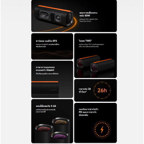 (NEW) Xiaomi Sound Party ลําโพง Bluetooth I กำลังไฟ 50W I Harman AudioEFX การปรับแต่ง I เอฟเฟกต์แสง3มิติ I ลำโพงบลูทูธ