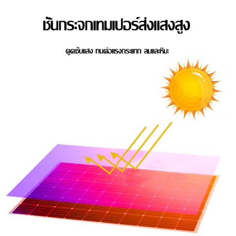 มีกระจก 2 ด้าน (600W Bifacial) ช่วยรับแสงได้ทั้งด้านหน้าและด้านหลัง เพิ่มการผลิตไฟฟ้า