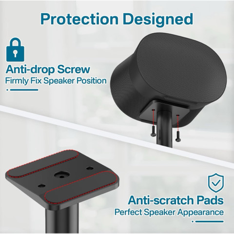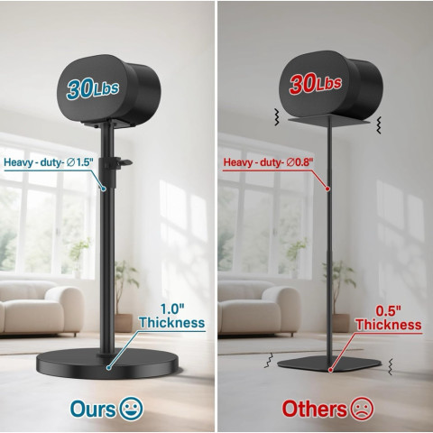 ตัวเสามีฟังก์ชันปรับระดับความสูงได้ตั้งแต่ประมาณ 34.25 นิ้ว ไปจนถึง 47.24 นิ้ว ปรับเลื่อนตามตำแหน่งการนั่งและระดับหูของผู้ฟังได้อย่างเหมาะสม เหมาะสำหรับใช้งานทั้งในห้องนั่งเล่น ห้องดูหนัง หรือห้องทำงาน ดีไซน์เรียบหรูสีดำแบบพ่นสี (Painted Finish) เข้ากับ Sonos Era 300 ได้อย่างลงตัว
