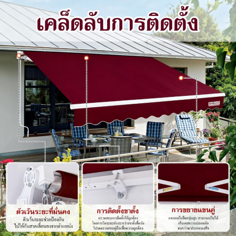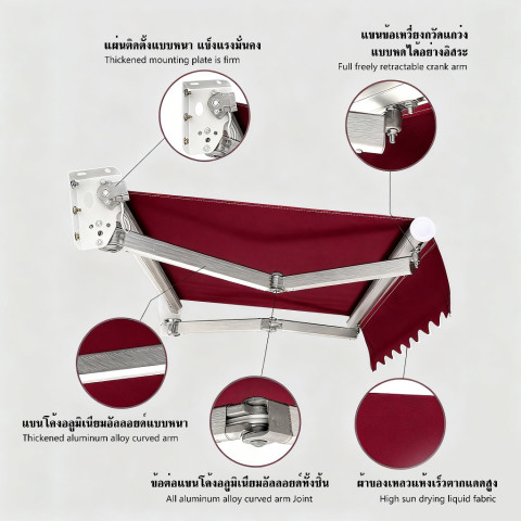 กันสาดพับเก็บได้พร้อมชุดแขนและโครงยึด