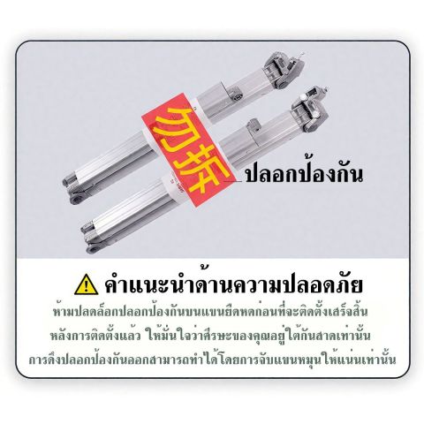 ห้ามถอดฟิล์มพลาสติกที่ป้องกันแขนรับน้ำหนักก่อนติดตั้งเสร็จ ให้ถอดหลังงานติดตั้งเสร็จเท่านั้น