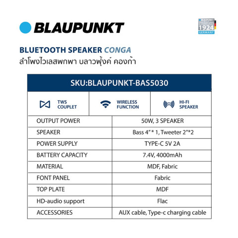 ลำโพงบลูทูธ BLAUPUNKT รุ่น CONGA