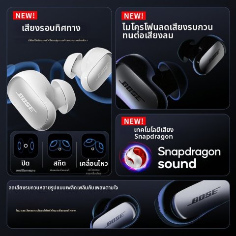 Bose | หูฟังบลูทูธ TWS ลดเสียงรบกวนพร้อมเสียงพื้นที่ คือหูฟังไร้สายระดับพรีเมียมสำหรับคนที่ต้องการ “ความเงียบที่พอดี” และ “มิติเสียงที่สมจริง” ในทุกสถานการณ์ ไม่ว่าจะเดินทาง ทำงาน หรือออกกำลังกาย ด้วยเทคโนโลยีตัดเสียงรบกวนที่ช่วยลดเสียงรอบข้าง ให้คุณโฟกัสกับเพลงและคอนเทนต์ได้เต็มอารมณ์ พร้อมระบบเสียงพื้นที่ (Spatial Audio) ที่ทำให้เสียงเหมือนลอยอยู่รอบตัว เพิ่มความดื่มด่ำยิ่งกว่าเดิม ในราคา 23,400.00 บาท
