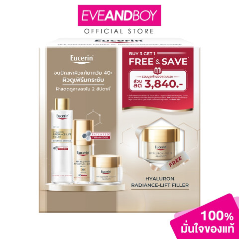 EUCERIN - Radiance-Lift 3D Set เซ็ตบำรุงผิวครบสูตรสำหรับวัย 40+ รวม 4 ไอเท็มดูแลผิวทั้งเช้า-กลางคืน เพื่อผิวดูกระชับแน่น เฟิร์มขึ้น พร้อมช่วยลดเลือนปัญหาฝ้าแดดให้ดูจางลงใน 2 สัปดาห์* ด้วยเทคโนโลยี Radiance-Lift 3D ที่ผสานพลังบำรุงจาก Hyaluron, Argan Oil และสารสกัดธรรมชาติ ช่วยให้ผิวเรียบเนียน อิ่มฟู และแลดูอ่อนเยาว์ เหมาะสำหรับผู้ที่ต้องการฟื้นฟูผิวที่เริ่มมีริ้วรอยและความหย่อนคล้อย