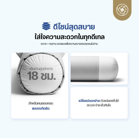เหมาะสำหรับผู้ที่ต้องการหมอนข้างคุณภาพสูงเพื่อช่วยจัดท่าทางการนอน ลดอาการปวดเมื่อย และเพิ่มคุณภาพการนอนหลับ