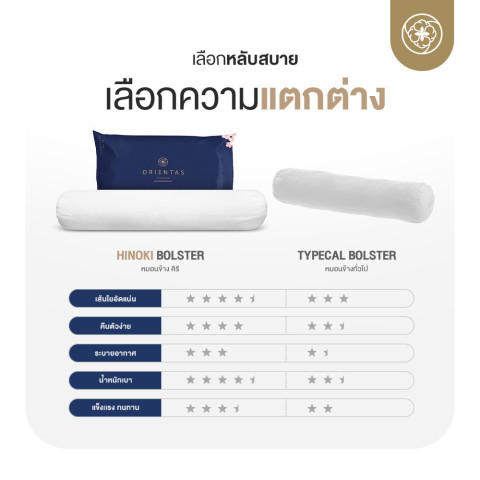 ด้วยราคาเพียง 279.65 บาท หมอนข้างใยโพลีเอสเตอร์ Orientas รุ่น Hinoki คือทางเลือกคุ้มค่าที่ผสานความนุ่มสบาย การรองรับสรีระ และการดูแลสุขภาพการนอนของคุณในทุกคืน หลับลึก อบอุ่น และผ่อนคลายราวอยู่ท่ามกลางป่าไม้หอมแบบญี่ปุ่น