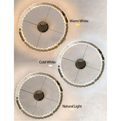 ด้วยโครงสร้างอะคริลิคและอลูมิเนียมคุณภาพดี ตกแต่งด้วยดีไซน์คริสตัลเงางาม ให้แสงสว่างสะท้อนเล่นมิติอย่างสวยงาม ช่วยยกระดับบรรยากาศห้องให้ดูหรูหราอบอุ่นทันทีที่เปิดไฟ มาพร้อมระบบไฟ LED 3 สี ปรับเปลี่ยนโทนแสงได้ตามอารมณ์และการใช้งาน ทั้งวอร์มไวท์สำหรับบรรยากาศผ่อนคลาย และขาวนวลสำหรับการใช้งานในชีวิตประจำวัน