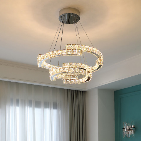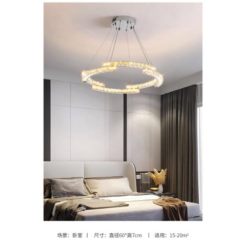 เติมเสน่ห์ให้ห้องนั่งเล่นและห้องนอนของคุณด้วย โคมไฟแขวนห้องนั่งเล่นคริสตัลตกแต่งหรูหรา สไตล์มินิมอลเอสเทติก พร้อมไฟ LED 3 สี ดีไซน์หรูดูแพง ผสมผสานความโมเดิร์นกับความอ่อนหวานแบบเอสเทติกได้อย่างลงตัว เหมาะสำหรับห้องนั่งเล่น ห้องนอน หรือมุมโปรดที่ต้องการบรรยากาศพิเศษ