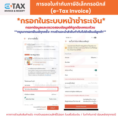 หากต้องการ ใบกำกับภาษี/ใบกำกับภาษีเต็มรูปแบบ กรุณากรอกข้อมูลในระบบให้ครบถ้วน งดออกย้อนหลัง ร้านจะออกใบกำกับให้ก่อนจัดส่งสินค้าเท่านั้น