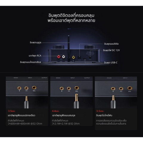 เอาต์พุต (Output): RCA, 3.5mm Single-Ended, 4.4mm Balanced