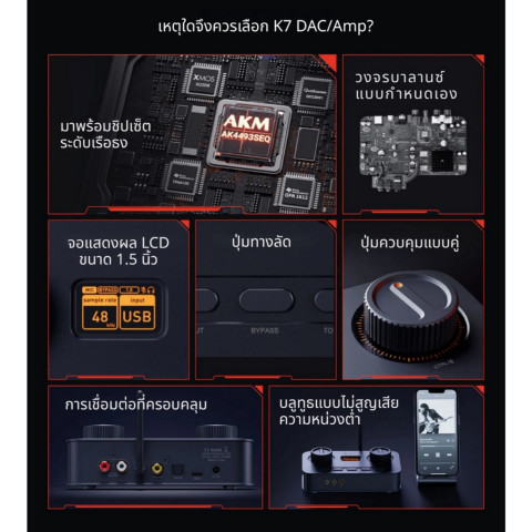 [ประกันศูนย์ไทย] Fosi Audio K7 Bluetooth DAC/AMP HiFi อเนกประสงค์สำหรับเล่นเกม ชิป AKM AK4493SEQ