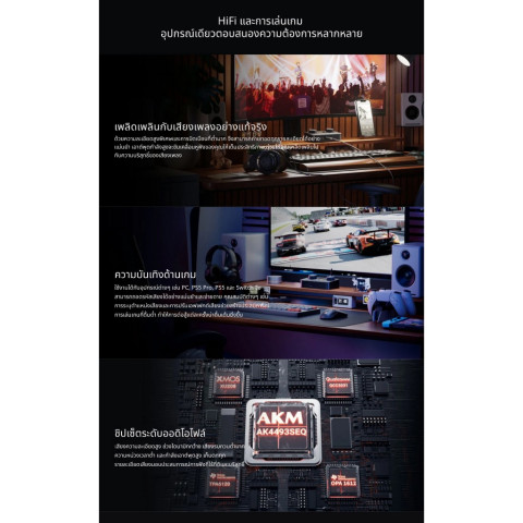 การใช้งานแนะนำ: ฟังเพลง, เล่นเกม, ทำงาน, สตรีมมิ่ง, มัลติมีเดีย
