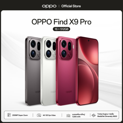 [New] OPPO Find X9 Pro 5G (16+512GB) สมาร์ทโฟนเรือธงดีไซน์พรีเมียม มาพร้อมกล้องเทเลโฟโต้ระดับโปร 200MP พัฒนาร่วมกับ Hasselblad รองรับซูมสูงสุด 120x เก็บทุกรายละเอียดได้คมชัดแม้ระยะไกล มาพร้อมชิปเซ็ตทรงพลัง หน้าจอ AMOLED คุณภาพสูง แบตเตอรี่ใหญ่ 7500mAh และชาร์จไว 80W ในราคาเพียง 42839.16 บาท