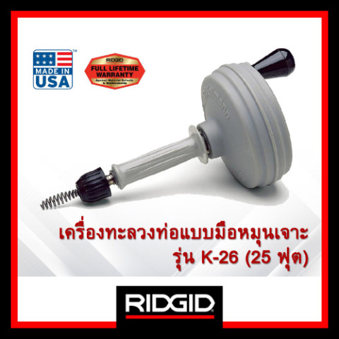 รุ่นสินค้า: RIDGID K-26 เครื่องทะลวงท่อแบบมือหมุนเจาะ