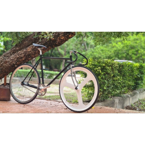 ล้อแม็กหน้า 3 ก้านวัสดุอะลูมิเนียม น้ำหนักเบาแต่แข็งแรง ช่วยลดแรงต้านอากาศเล็กน้อยและเพิ่มความนิ่งขณะปั่น โดยเฉพาะเมื่อใช้ในเมืองหรือทางเรียบ มองแวบเดียวก็รู้ว่าคันนี้ไม่ธรรมดาเลือกสไตล์และขนาดให้เข้ากับคุณ