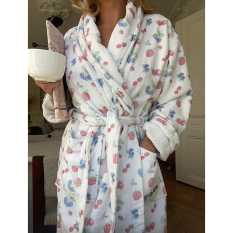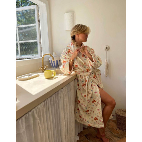 ผลิตจากผ้าคอตตอนออร์แกนิก 100% ที่ได้รับการรับรอง ปลอดภัยต่อผิวและเป็นมิตรต่อสิ่งแวดล้อม เนื้อผ้านุ่ม ซับเหงื่อได้ดี ให้ความอบอุ่นกำลังพอดี เหมาะทั้งหลังอาบน้ำ ตอนทำสกินแคร์ หรือคลุมสบาย ๆ ในวันพักผ่อนอยู่บ้าน ลายพิมพ์ Cottage Meadow แบบเพนต์ด้วยมือ เติมกลิ่นอายสวนดอกไม้สไตล์ยุโรป ให้ลุคหวานละมุนแต่ยังคงความมินิมอลตามแบบแบรนด์