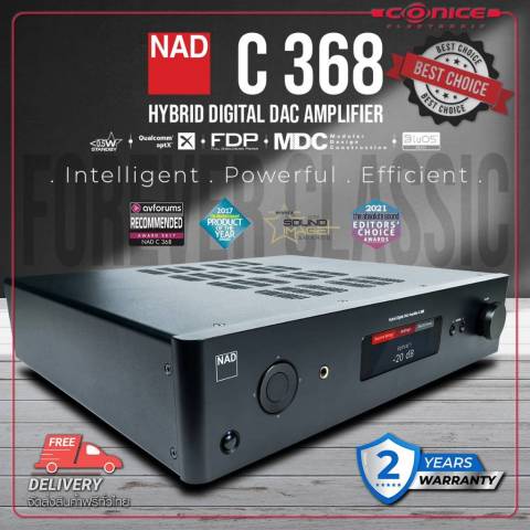 ด้วยราคาที่สมเหตุสมผลต่อประสิทธิภาพ พร้อมการรับประกันสินค้า 2 ปี NAD C368 Hybrid Digital DAC Amplifier คือหัวใจสำคัญของระบบเสียงในบ้านที่ให้ทั้งพลัง ความยืดหยุ่น และคุณภาพเสียงที่เหนือกว่าตัวเลขกำลังขับบนสเปค ช่วยยกระดับประสบการณ์การฟังเพลงให้เต็มอารมณ์มากยิ่งขึ้น