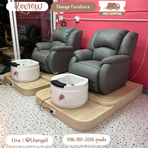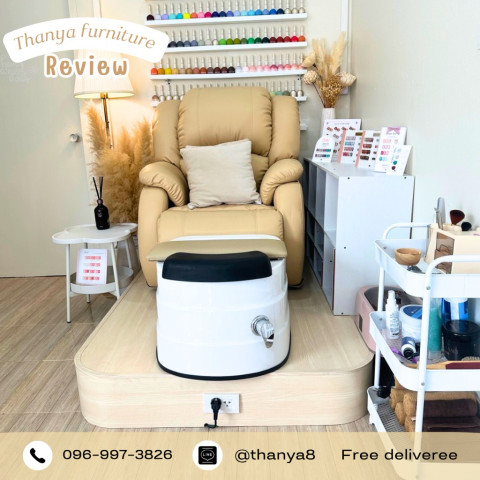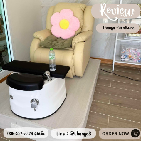 ตัวโซฟาออกแบบให้รองรับสรีระ นั่งสบาย นุ่มแน่นกำลังดี ช่วยให้ลูกค้าผ่อนคลายระหว่างทำสปาเท้า ฐานรองแข็งแรง ทนทาน จัดวางอ่างสปาได้อย่างมั่นคง ส่วนอ่างสปาน้ำวนมาพร้อมระบบไหลเวียนน้ำที่ช่วยนวดเท้าเบา ๆ ให้ความรู้สึกผ่อนคลาย ช่วยลดความเมื่อยล้าได้อย่างดี