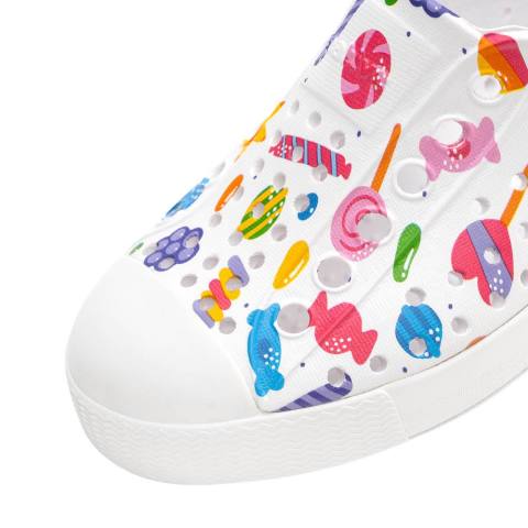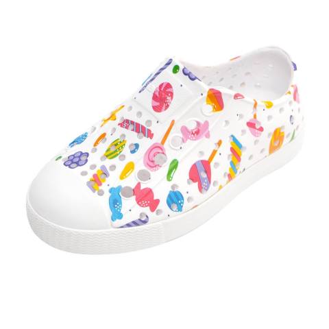 เติมความสนุกให้ทุกก้าวของลูกด้วย Native รองเท้ากันน้ำเด็กโต EVA รุ่น Jefferson Print สี Shell White/Shell White/Retro Candy รองเท้าสุดฮิตรุ่นซิกเนเจอร์ที่มาพร้อมดีไซน์ลายพิมพ์น่ารัก สวมใส่ง่าย น้ำหนักเบา และกันน้ำได้ เหมาะสำหรับเด็กโตที่ชอบความคล่องตัวและกิจกรรมกลางแจ้ง