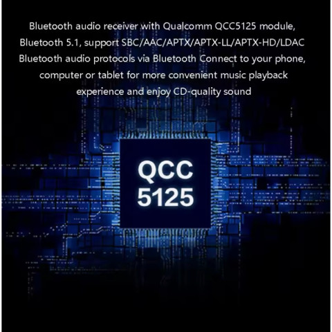 ในส่วนของ Bluetooth ใช้โมดูล Qualcomm ระดับ HD รองรับ Codec ครบทั้ง SBC, AAC, aptX, aptX LL, aptX HD และ LDAC ให้คุณเล่นเพลงจากสมาร์ทโฟน แท็บเล็ต หรือคอมพิวเตอร์ ได้อย่างสะดวกพร้อมคุณภาพเสียงระดับ CD หรือสูงกว่า เสาสัญญาณบลูทูธ 2 ต้นช่วยให้การเชื่อมต่อเสถียรและครอบคลุมพื้นที่กว้าง เหมาะกับบ้านหลังใหญ่หรือร้านค้าโล่งๆ ที่ต้องการสัญญาณนิ่งกว่าอุปกรณ์ทั่วไป