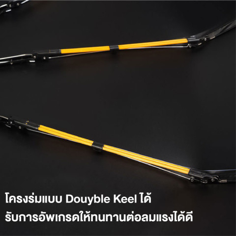 โครงกระดูกไฟเบอร์แก้ว แข็งแรง ทนทาน รองรับแรงลมได้ดีเยี่ยม ป้องกันลมได้ถึงระดับ 10