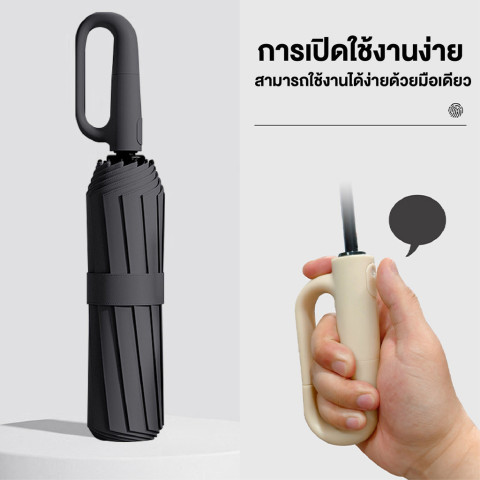 ร่มพับอัตโนมัติ พร้อมห่วงเกี่ยว ขนาดใหญ่ กันแดดกันฝน ดีไซน์เรียบหรู ใช้งานง่าย เหมาะสำหรับนักเรียน ผู้หญิง ผู้ชาย พกพาสะดวกทั้งใส่กระเป๋าเรียน กระเป๋าทำงาน หรือแขวนกับกระเป๋าสะพายด้วยด้ามจับแบบห่วงสุดเก๋ ตัวเดียวเอาอยู่ทั้งแดดและฝนในทุกวันของคุณ