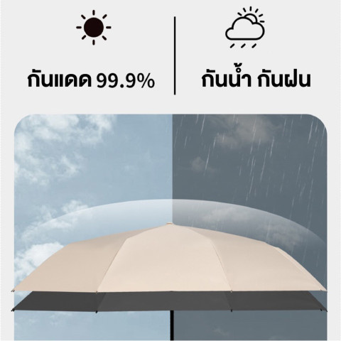ร่มรุ่นนี้เป็นร่มพับ 3 ตอน ขนาดใหญ่ กางแล้วบังได้เต็มตัว โครงสร้างแข็งแรงด้วยก้านไฟเบอร์ 10 ก้าน (มีทั้งแบบ 2+1 และ 3+2) ทนแรงลมได้ดี ไม่พลิกกลับง่าย พร้อมระบบเปิด–ปิดอัตโนมัติ ใช้งานสะดวกเพียงปลายนิ้วสัมผัส ไม่ต้องออกแรงดึงให้ยุ่งยาก